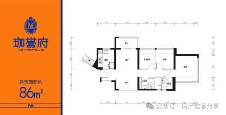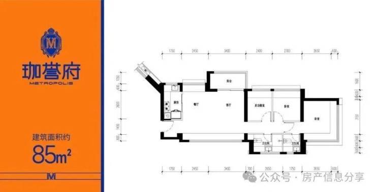 | 约85㎡(横厅)三房两厅两卫【总价约415-455万】