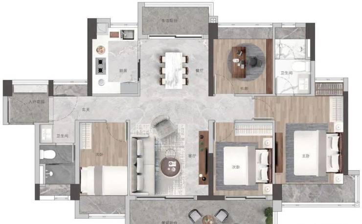 高配双主套三卫,书房可作主卧延展空间,打造总统级套房