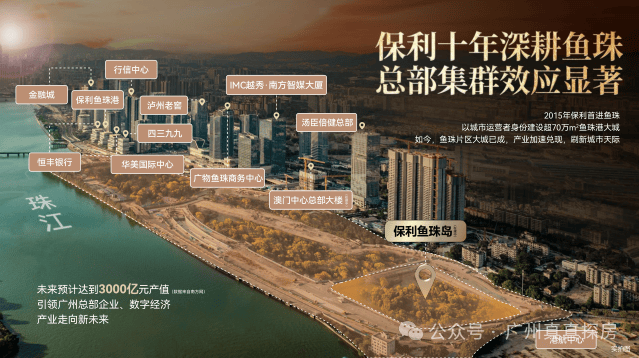 1:保利鱼珠岛位于广州市黄埔区,临近珠江,交通便利,有利于吸引珠江两岸的客户。