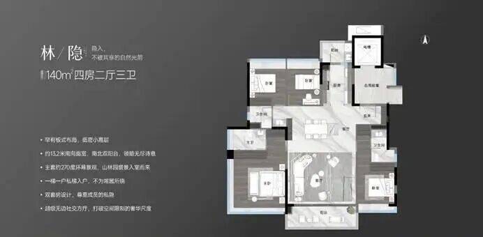 【林隐】建面约140㎡广州罕见一梯一户板式大平层,双主套,全明卫,南北双阳台