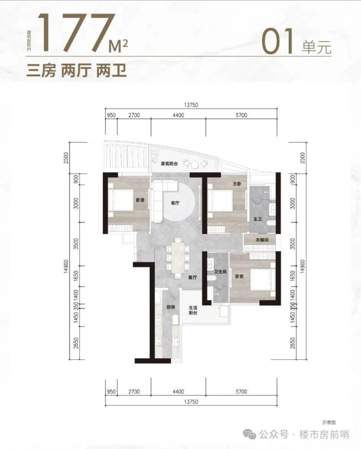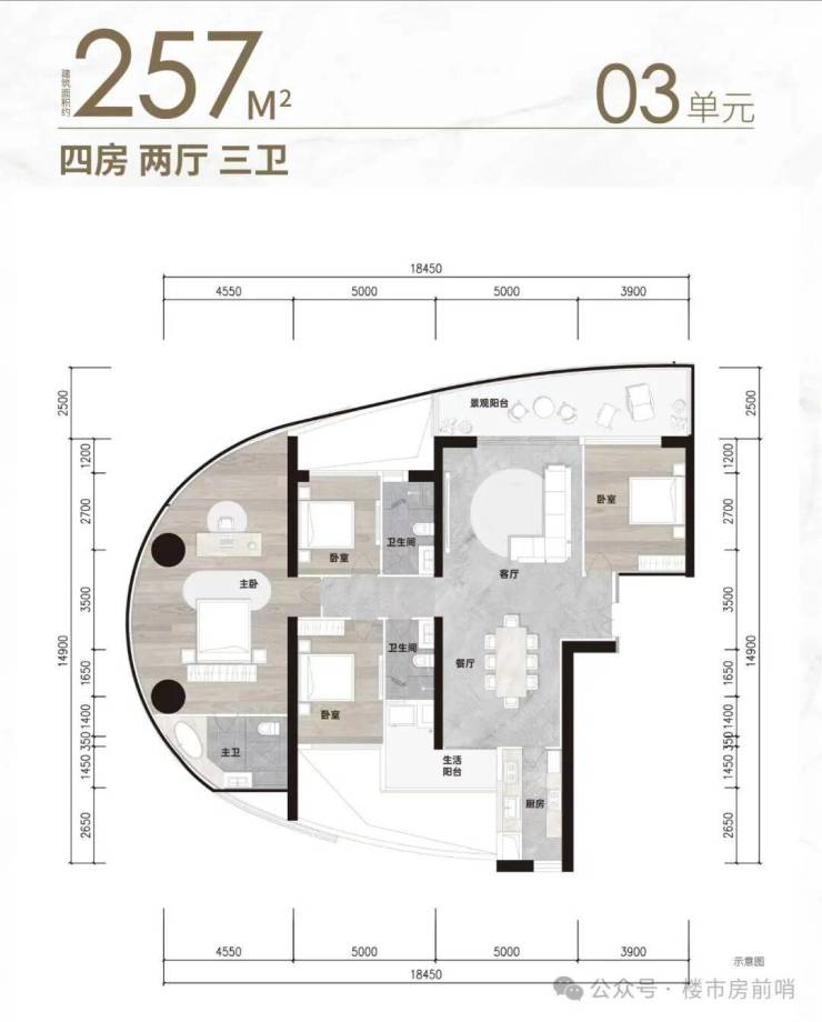 A5栋户型,建面约176-278方舒适三至四房270°望江大平层