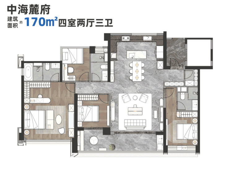 最后一个建面约170㎡的四房户型,总价最高,要1200万以上。