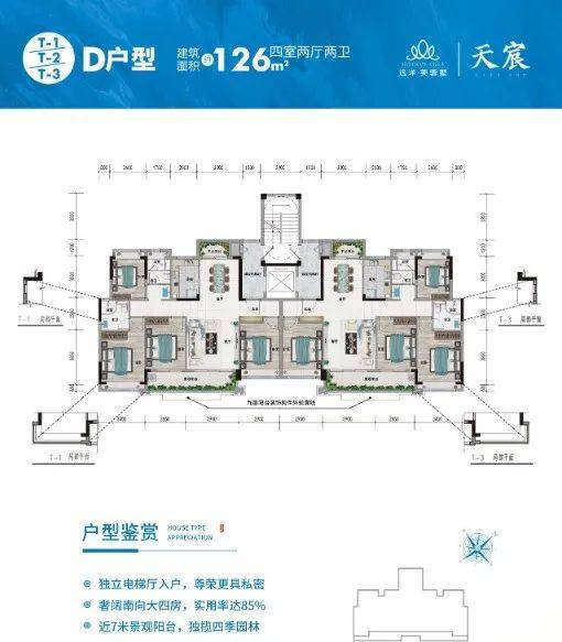 每套户型均配备7米宽景阳台;拥山望湖,户户朝南,贴合诗意湖山的向往,胜收山野四季风景。