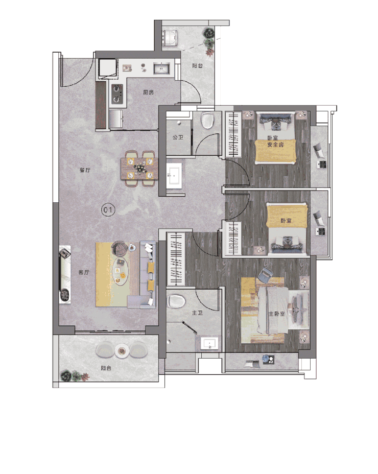 建面约137㎡户型则带来极致的空间感。4+1房的贴心设计,约7米长的超大横厅,无论是三胎家庭或是三代同堂,都丝毫不会显得拥挤。