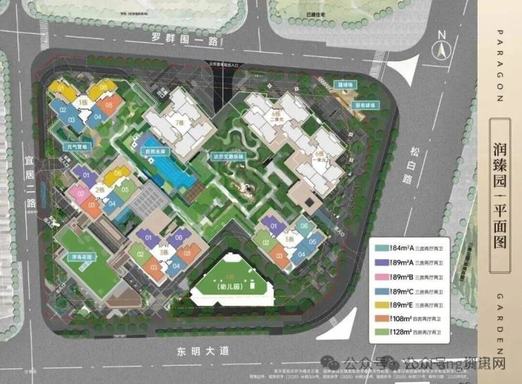 润宏城·润臻园(2-12地块)位于东明大道和松白路西北侧,由7栋高层住宅围合组成,