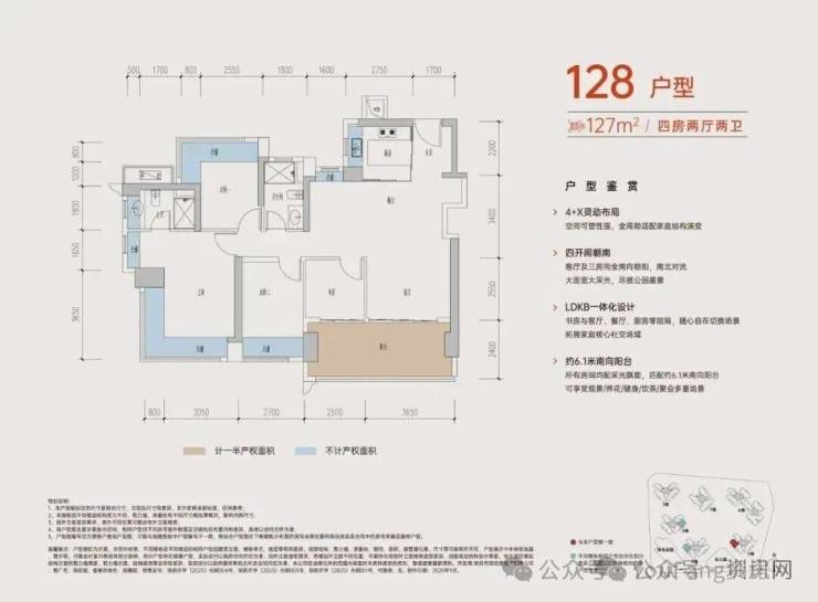 四开间南向采光,约6米开间阳台,客厅与次卧可拓展,双L型飘窗,多面采光通透舒适,开阔视野 、无遮挡、看公园景观