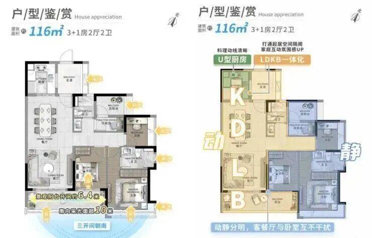 2、建面约116㎡3+1房2厅2卫(横厅)