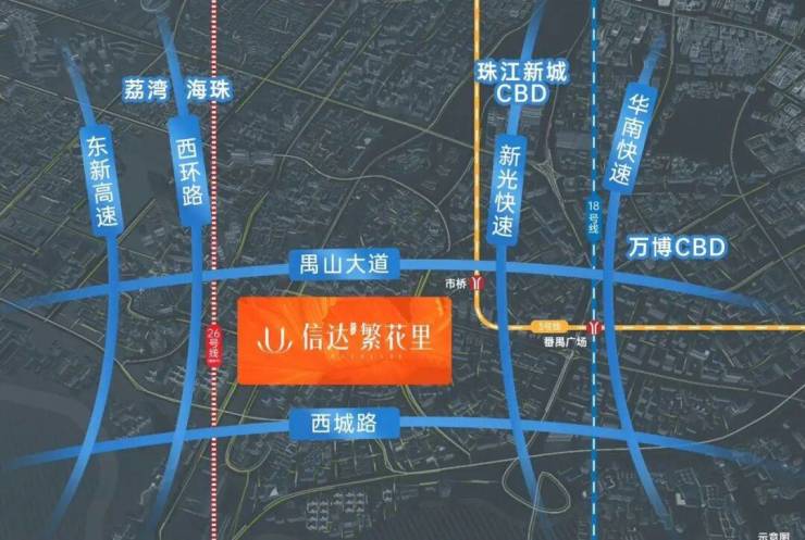 - 交通:临禺山大道、西环路,接驳新光快速、东新高速,自驾通达万博、珠江新城、荔湾等