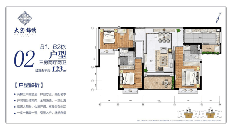 大宏锦绣依据现代人居的标准,以精细到每一处细节的匠心,打造90-140㎡ 两至四房品质华宅