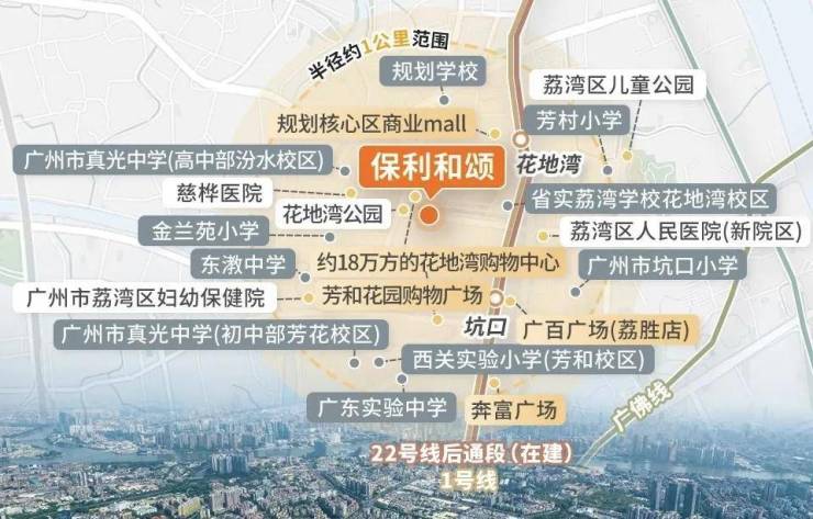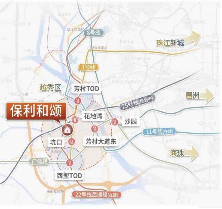 项目距离1号线地铁坑口站约650米,周边还有广佛线、地铁11号线、25-28号线。