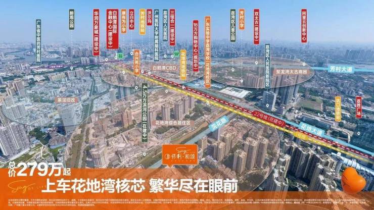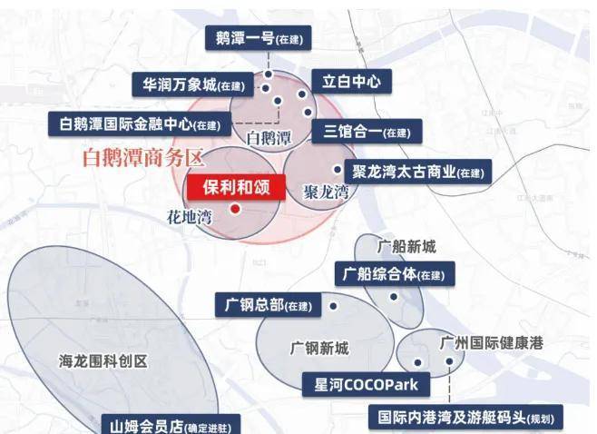 现有的广百广场距离项目仅几百米,花地湾几个楼盘也都有底商,未来还有万汇天地的大体量商业中心,周边汇集广州首家华润万象城(在建)、聚龙湾太古商业体(在建)、广船商业体(在建)、星河COCOpark(已开业)