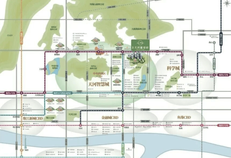 交通出行上,项目离地铁 6 号线高塘石站约 700 米,步行 9 分钟左右能到,通过这条线路 6 站可换乘 3 号线,4 站换乘 21 号线,5 站换乘 7 号线,30 分钟内就能直达珠江新城、金融城、琶洲三大 CBD,对在核心区上班的人来说通勤压力不大。