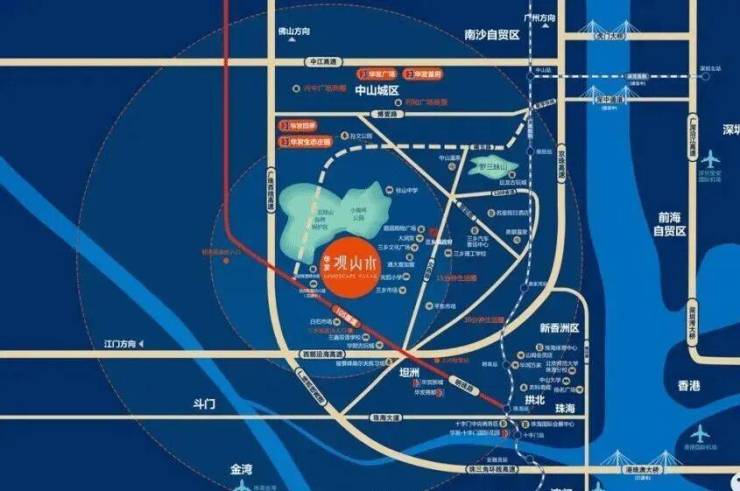 2、双高速口旁 迅达珠澳港:5分钟即达珠三角环线高速的三乡收费站和板芙收费站,20分钟瞬达中山石岐华发商都;30分钟即达珠海保十琴、珠海中心、珠海华发商都等,畅享珠海优质生活配套;40分钟通达港珠澳大桥,可快速接驳港澳,畅行湾区无界。
