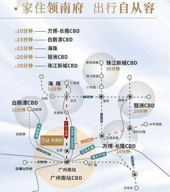 世界级TOD枢纽:广州南站是粤港澳大湾区的重要交通枢纽,连接着全国各地乃至国际目的地。依托这一独特优势,广州城投·领南府不仅是一个居住区,更是一个集工作、生活、休闲于一体的综合社区。
