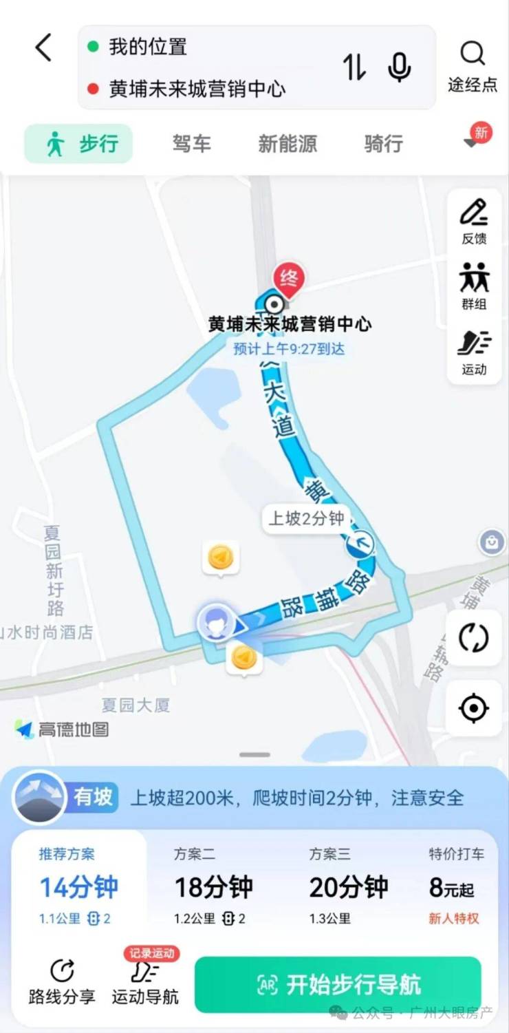 大眼实测从夏园地铁站C出口走去售楼部,大约1.1公里,14分钟左右