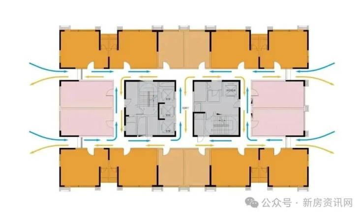 摒弃传统单过道,采用双环通走廊,极大提升通风采光,户户单边设计,无门户相对,舒适度不言而喻,打造私密品质生活