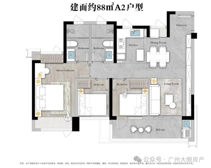 产品以主打刚需,有88㎡、98㎡、108㎡三至四房