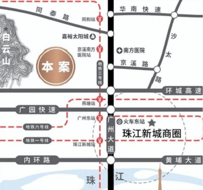 自驾经广州大道北、华南快速干线,15分钟可达白云新城,出行选择灵活多样。