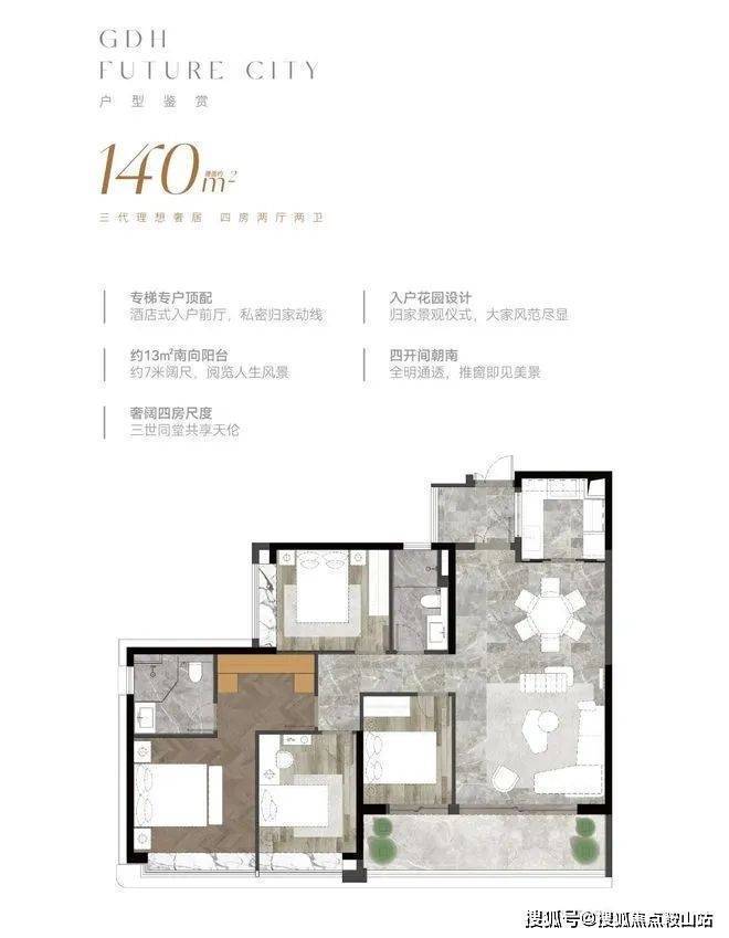 项目采用现代化建筑设计,公建化外立面搭配270°IMAX环幕观景视野,尽显豪宅品质。住宅单价在8.5至11万元/平方米之间,总价介于1250至2900万元/套;公寓单价则为3.7至4.6万元/平方米,总价在165至430万元/套之间。户型设计方面,超20米连续采光面、大尺度面宽阳台、地上地下双落客大堂等设计,均体现了星级酒店式的奢华感。
