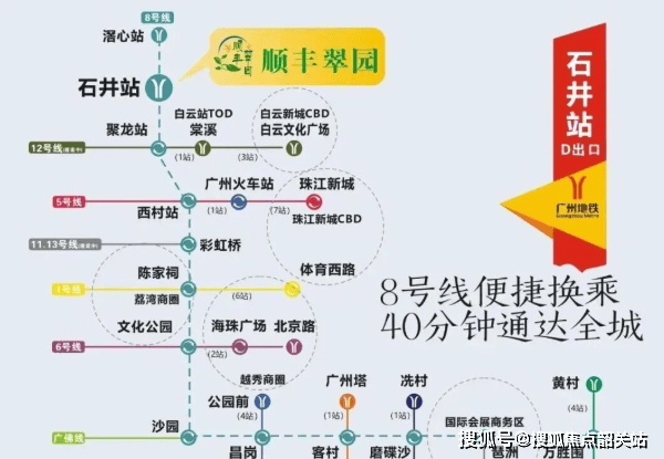 对于现代家庭而言,交通便利性是衡量居住价值的重要标尺。顺丰翠园坐落于白云区石井兆丰路,紧邻石井文化广场,距离地铁8号线石井站仅约700米,步行即可轻松抵达。搭乘8号线,两站即达广州重要交通枢纽——白云站,20分钟内可直达荔湾、越秀等传统核心商圈,无缝连接城市繁华心脏。