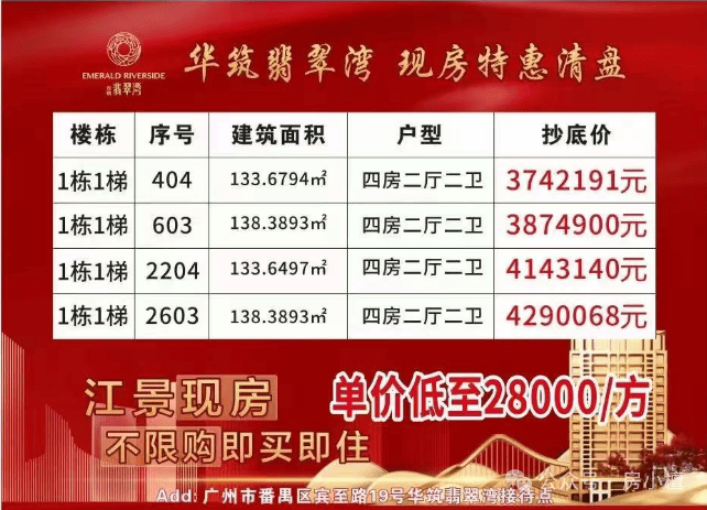 与中心区仅一桥之隔,价格却只需海珠二手价,性价比极高。以海珠区同类型江景房为例,目前市场均价已达到4.5万/㎡,而华筑翡翠湾的特价不到3万一平方,价格优势明显。这意味着购房者可以用更低的成本,享受到同样优质的江景资源和居住品质。