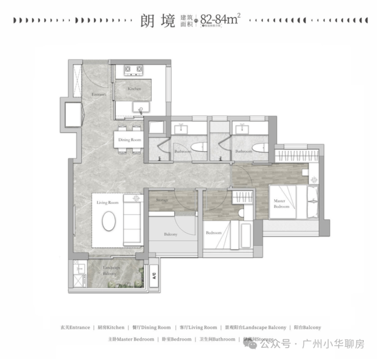 >> 建面约82-84㎡2房2厅2卫+1灵动空间 <<