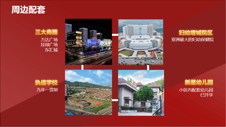 5公里范围内有4大商圈(增城万达、东汇城、荔富汇景20万㎡在建中、项目西侧融创商业8万㎡规划中)环绕; 小区配有1500㎡商业街,配有5000㎡豪华会所。