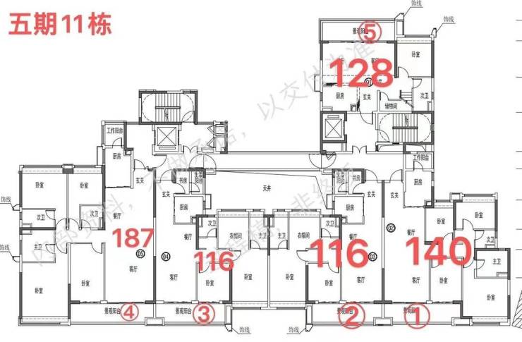 五期交楼时间2025年7-12月,在售详细信息以及楼栋分布图如下: