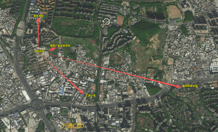 明德广地实验学校(省一级标准,小学 + 初中,业主子女可直读,不住校学费约 2 万 +/ 年)。