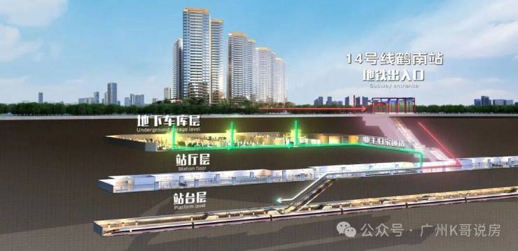 与14号线鹤南站A出口联通,直达社区地下二层车库的楼栋大堂,无忧天气变化,从容便捷归家。