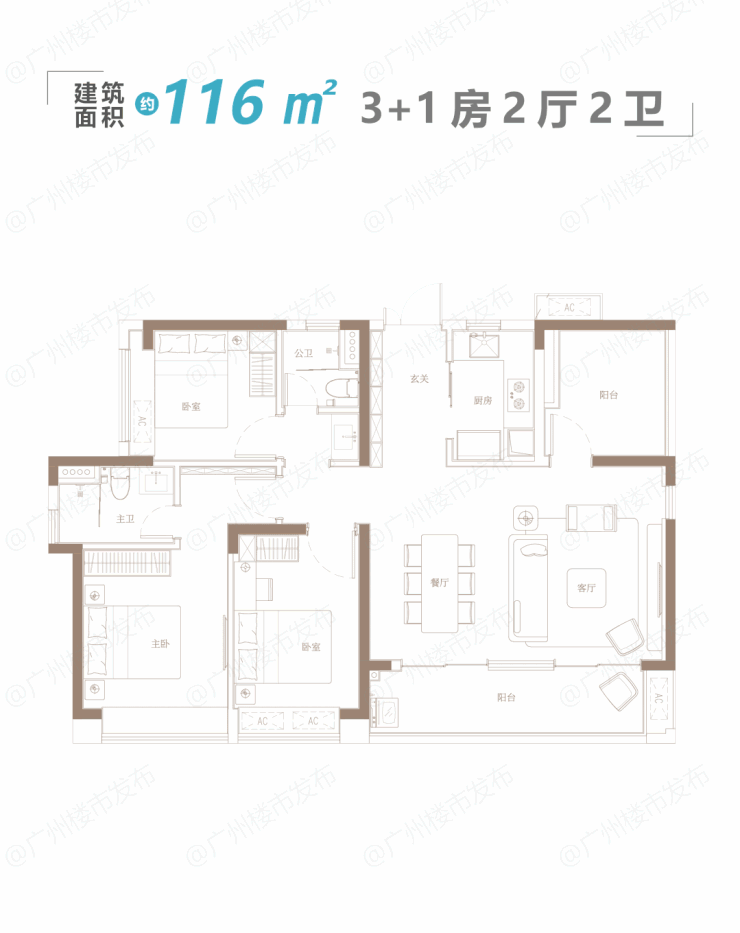 至于116平3+1房,也是目前整个项目尺度最宽绰的“全能爆款”。