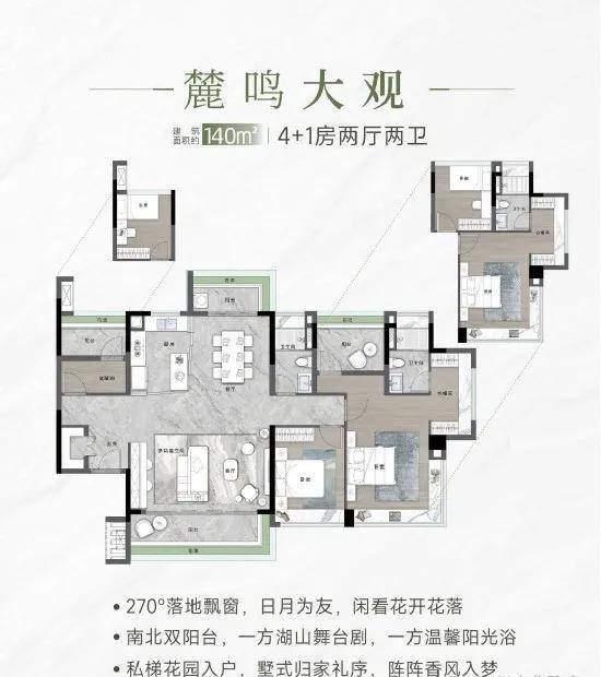采用“东湖之钻”设计理念,营造9景观1水景,缔造约5400㎡的雅致美学园林;