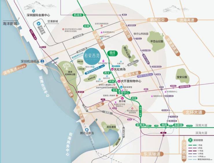 🛍️商业:宝安大仟里、西乡天虹、新天地购物广场、航城里购物中心、壹航城购物中心,沿宝安大道直达:壹方城、海雅缤纷城