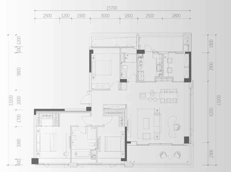建面约174㎡的3+1房