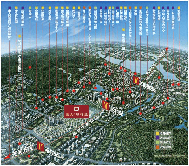 旺村、汤村双地铁口上盖,5站到天河。知识城主干道九龙大道,约2公里接驳广河高速,瞬达广州主城及粤港澳大湾区主要城市。