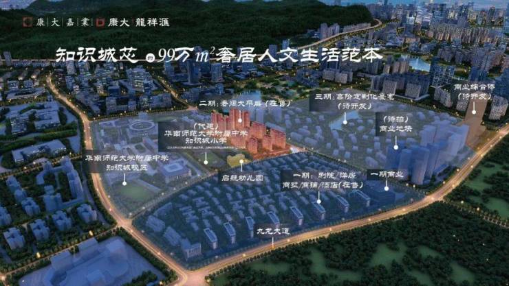 康大龙祥汇雄踞知识城最核心地段,三公里繁华半径内,荟聚极核发展资源,集休闲娱乐、医疗教育等醇熟配套于一体。