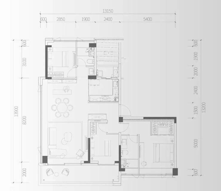 而餐厅,可容纳8-10人圆桌,更贴合广府人围合共聚的习惯。
