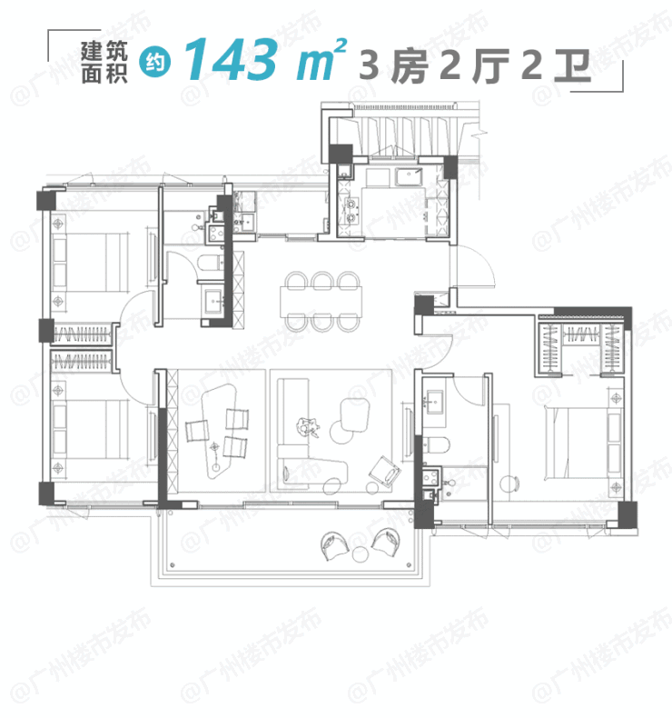 建面约143㎡3房