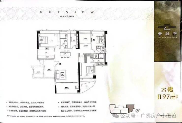 云瀚府目前在售的户型涵盖130-197㎡的3+1房至4+1房,均为全四房、全南向类板楼设计。