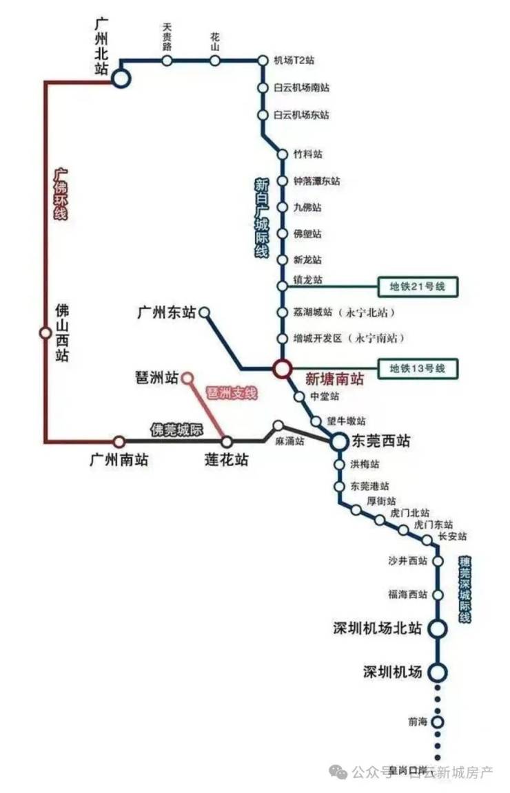 5.新白广城轨(在建中)1站白云机场,南向通达东莞和深圳