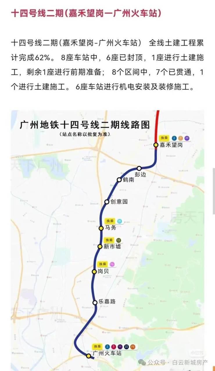 2.14号线二期(在建中)不换乘直达广州火车站