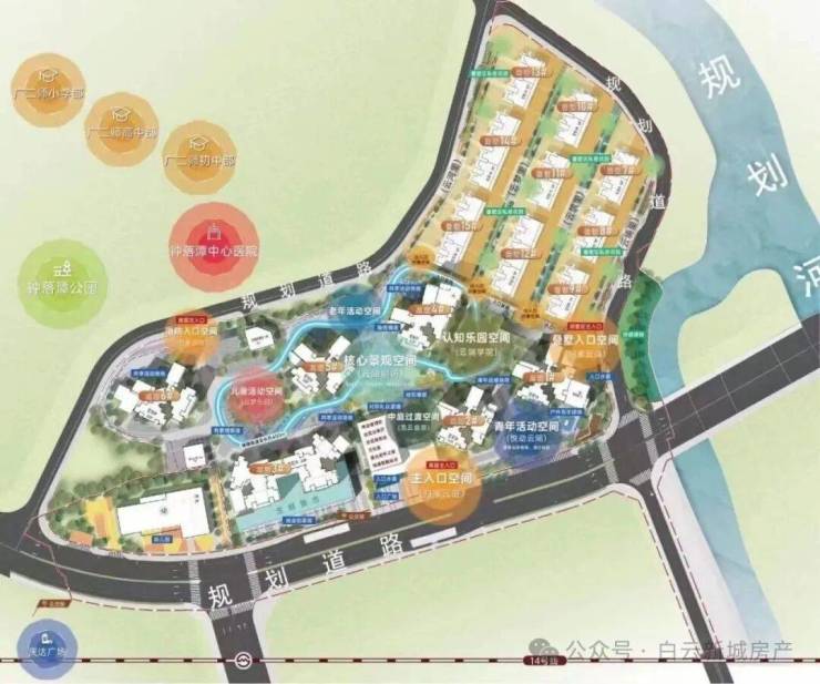 3.项目相比钟落潭其他几个项目,位置更加靠近老城区这边,现成的配套设施更加成熟。