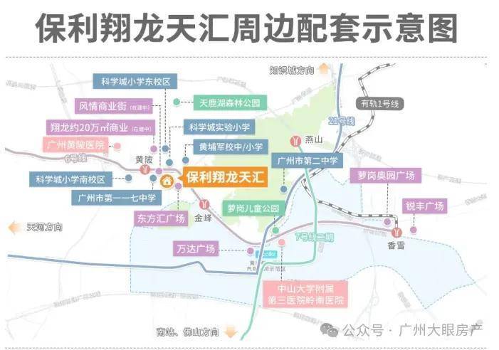 5所医院环绕,其中中山大学附属第三医院岭南医院、广东省第二中医院黄埔医院均属三甲医院,为业主健康保驾护航。