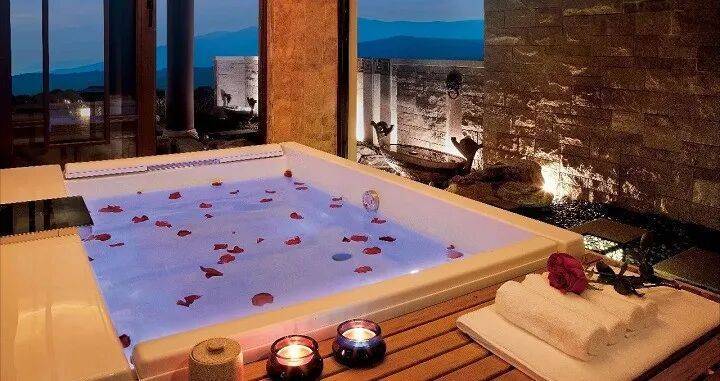 同样珍贵的,还有泳池一侧的氡温泉,从泉眼中不断涌出的纯真泉水,拥有和瑞士相媲美的珍稀品质,亦是全中国绝无仅有。