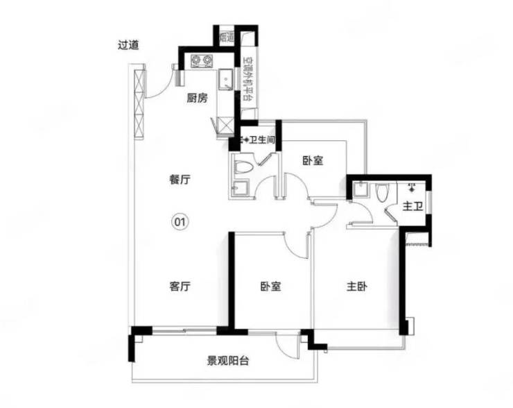 客厅宽敞明亮,是家庭交流和社交活动的核心空间;卧室安静私密,为休憩提供舒适环境;厨房与餐厅一体化设计,使生活流线自然顺畅;阳台与窗景设计延伸视野,让自然光线和空气自由穿行室内,提升居住舒适度与生活品质。