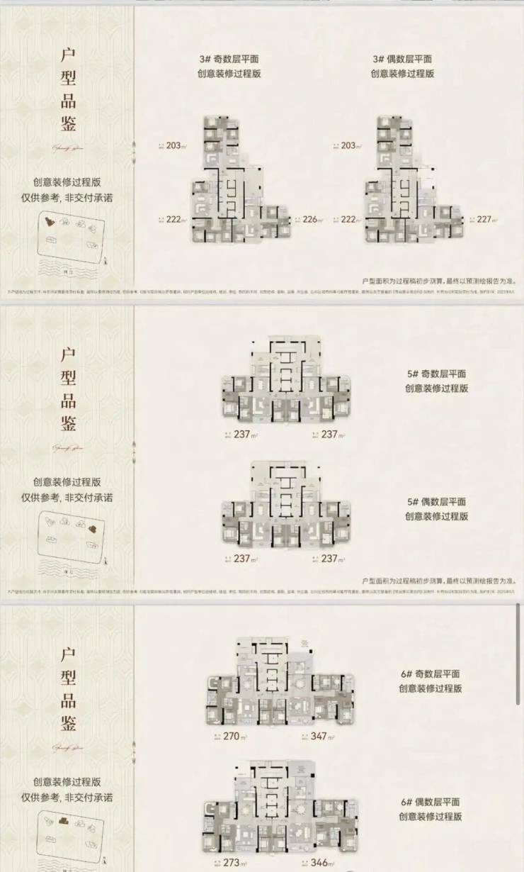 已拿证的是3栋是50层高,4梯3户设计,面积分别有205、225、228平