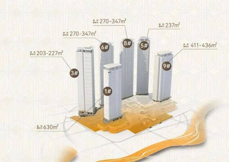 6栋和8栋是48层高,3梯2户设计,面积277、348平,大平层产品