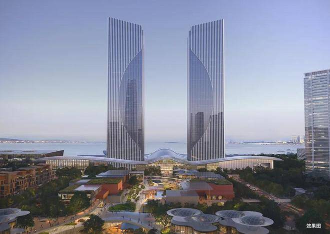 ①地标双塔:沿海双塔超高层总部地标(规划中),约249米高的西岸门户封面,含约4.5万㎡五星级酒店,约25万㎡甲级写字楼