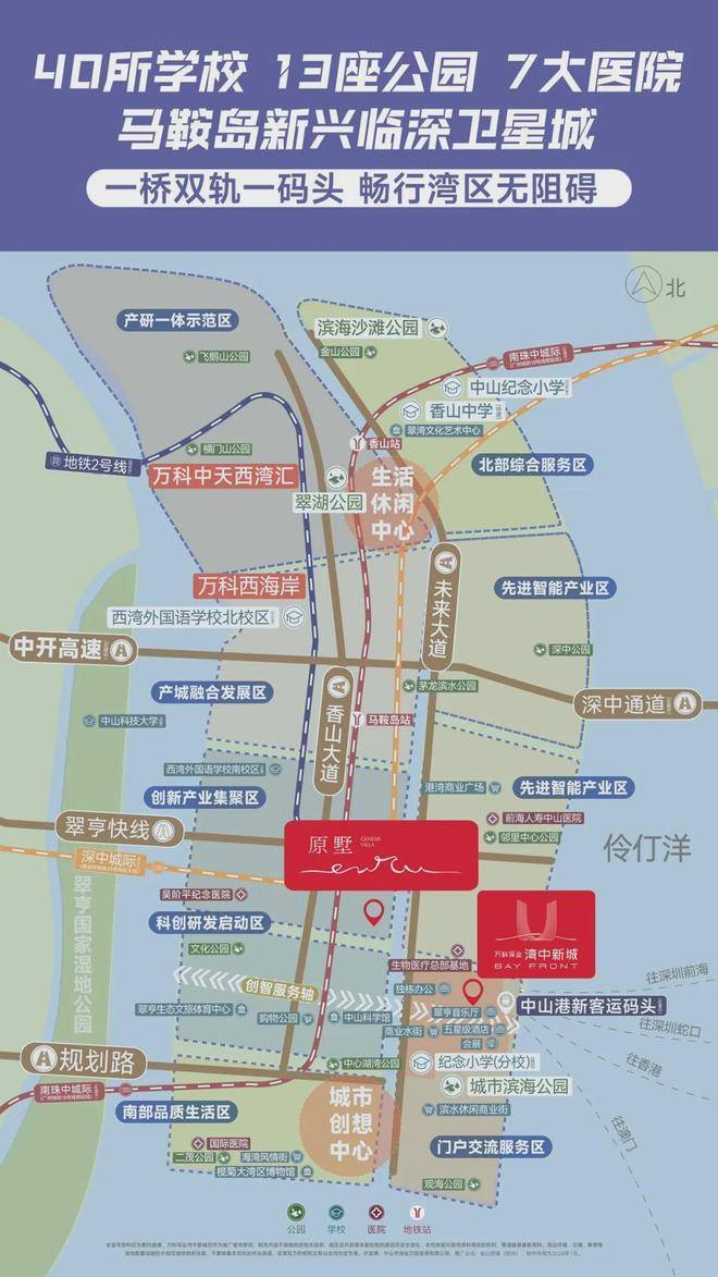 马鞍岛作为黄金内湾的核心组成部分,把握战略机遇,同时为中山城市价值的制高点,未来城市新中心。