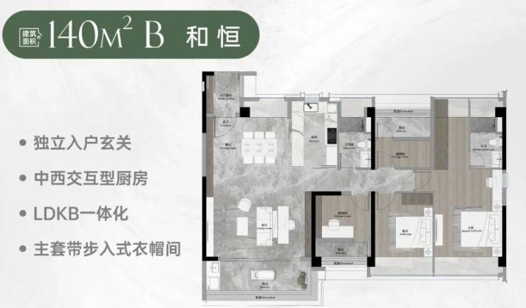 140平方和恒:4室2厅2卫,超大衣帽间+入户玄关